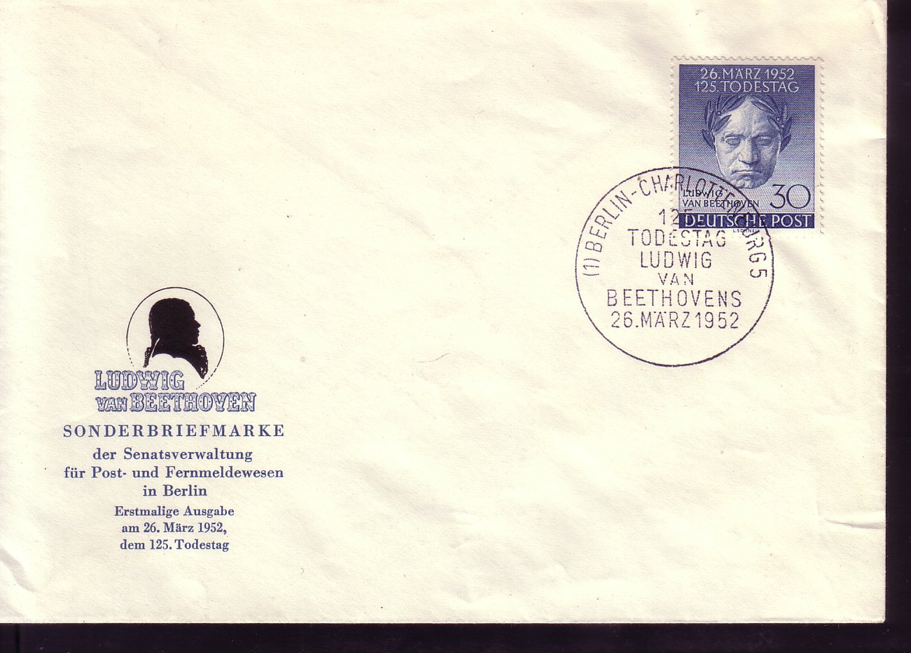 Sie bieten auf einwandfreie Ersttagsbriefe von Berlin.Sie erhalten den FDC , den Sie im Bild sehen, alles verschiedene im Hinblick auf Gestaltung des Schmuckumschlags,echt gelaufen,Einzelfdcs oder zusammengefasste.Der Ordnung halber erwaehnen wir, das Gebrauchsspuren auftreten koennen.