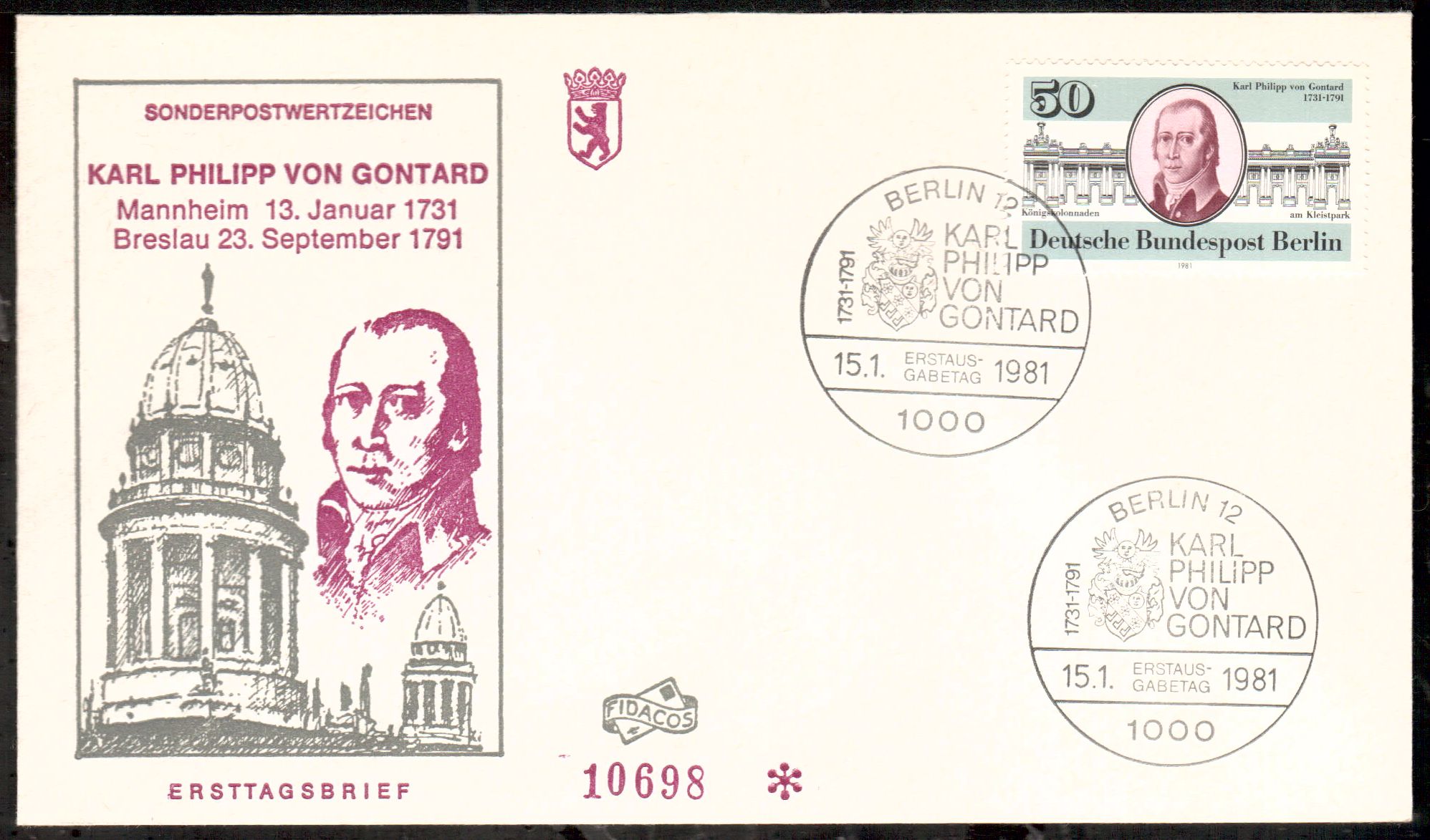 Sie bieten auf einwandfreie Ersttagsbriefe von Berlin.Sie erhalten den FDC , den Sie im Bild sehen, alles verschiedene im Hinblick auf Gestaltung des Schmuckumschlags,echt gelaufen,Einzelfdcs oder zusammengefasste.Der Ordnung halber erwaehnen wir, das Gebrauchsspuren auftreten koennen.