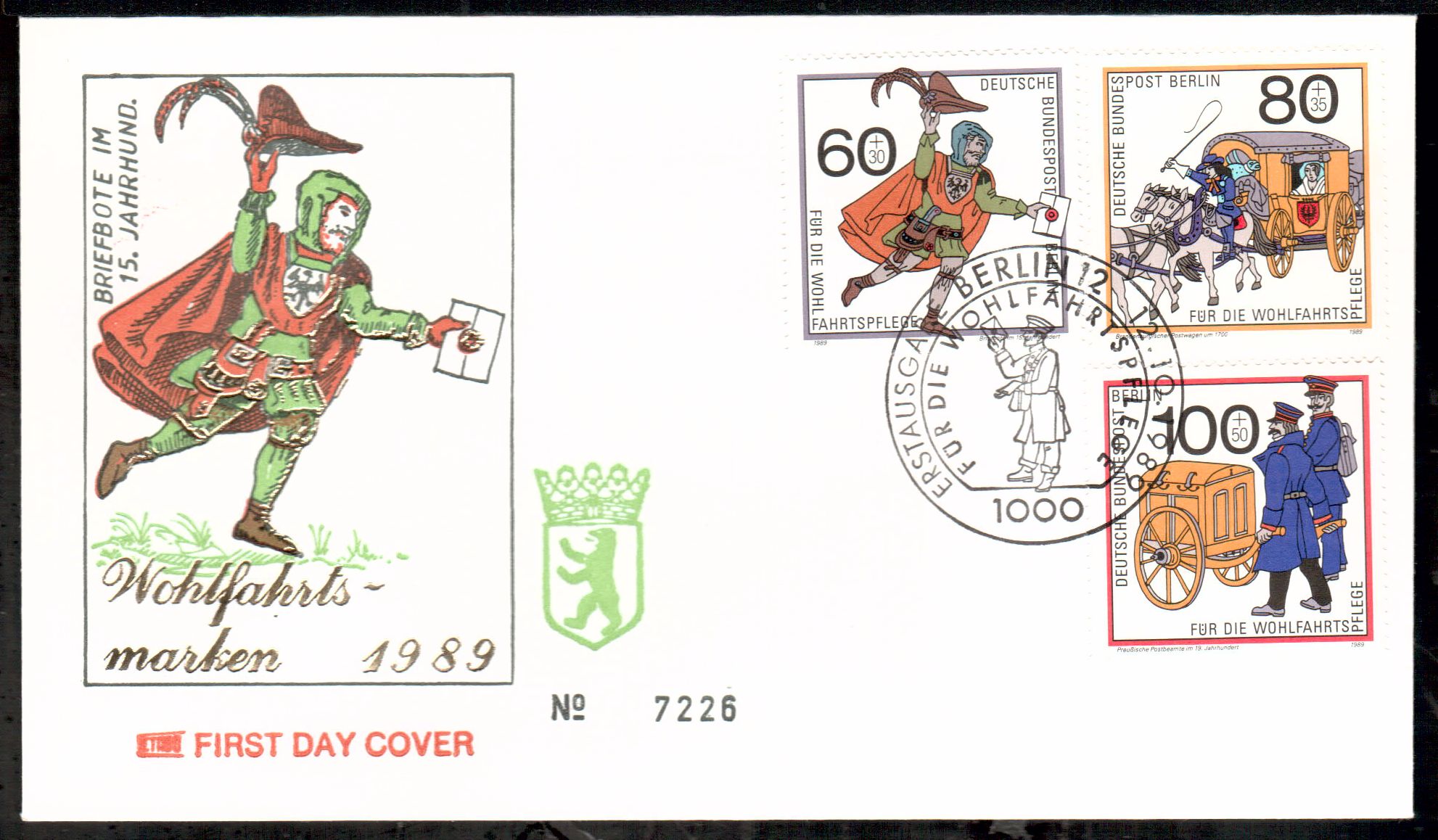 Sie bieten auf einwandfreie Ersttagsbriefe von Berlin.Sie erhalten den FDC , den Sie im Bild sehen, alles verschiedene im Hinblick auf Gestaltung des Schmuckumschlags,echt gelaufen,Einzelfdcs oder zusammengefasste.Der Ordnung halber erwaehnen wir, das Gebrauchsspuren auftreten koennen.