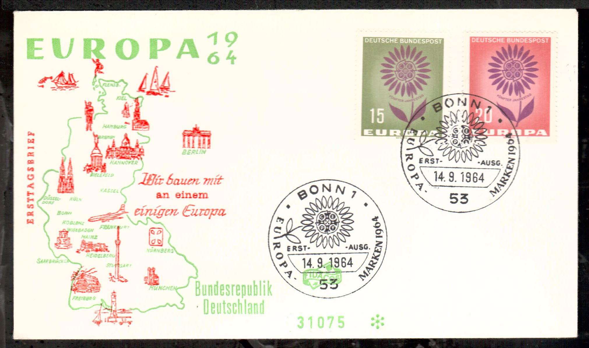 Sie bieten auf einwandfreie Ersttagsbriefe der Bundesrepublik.Sie erhalten den FDC , den Sie im Bild sehen, alles verschiedene im Hinblick auf Gestaltung des Schmuckumschlags,echt gelaufen,Einzelfdcs oder zusammengefasste.Der Ordnung halber erwaehnen wir, das Gebrauchsspuren auftreten koennen.