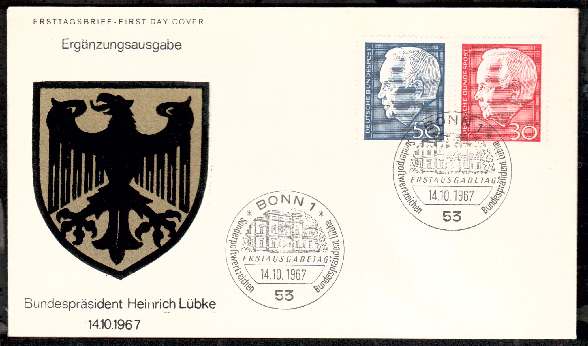 Sie bieten auf einwandfreie Ersttagsbriefe der Bundesrepublik.Sie erhalten den FDC , den Sie im Bild sehen, alles verschiedene im Hinblick auf Gestaltung des Schmuckumschlags,echt gelaufen,Einzelfdcs oder zusammengefasste.Der Ordnung halber erwaehnen wir, das Gebrauchsspuren auftreten koennen.