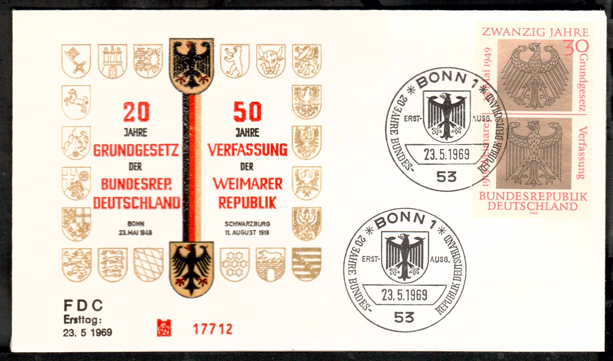 Sie bieten auf einwandfreie Ersttagsbriefe der Bundesrepublik.Sie erhalten den FDC , den Sie im Bild sehen, alles verschiedene im Hinblick auf Gestaltung des Schmuckumschlags,echt gelaufen,Einzelfdcs oder zusammengefasste.Der Ordnung halber erwaehnen wir, das Gebrauchsspuren auftreten koennen.