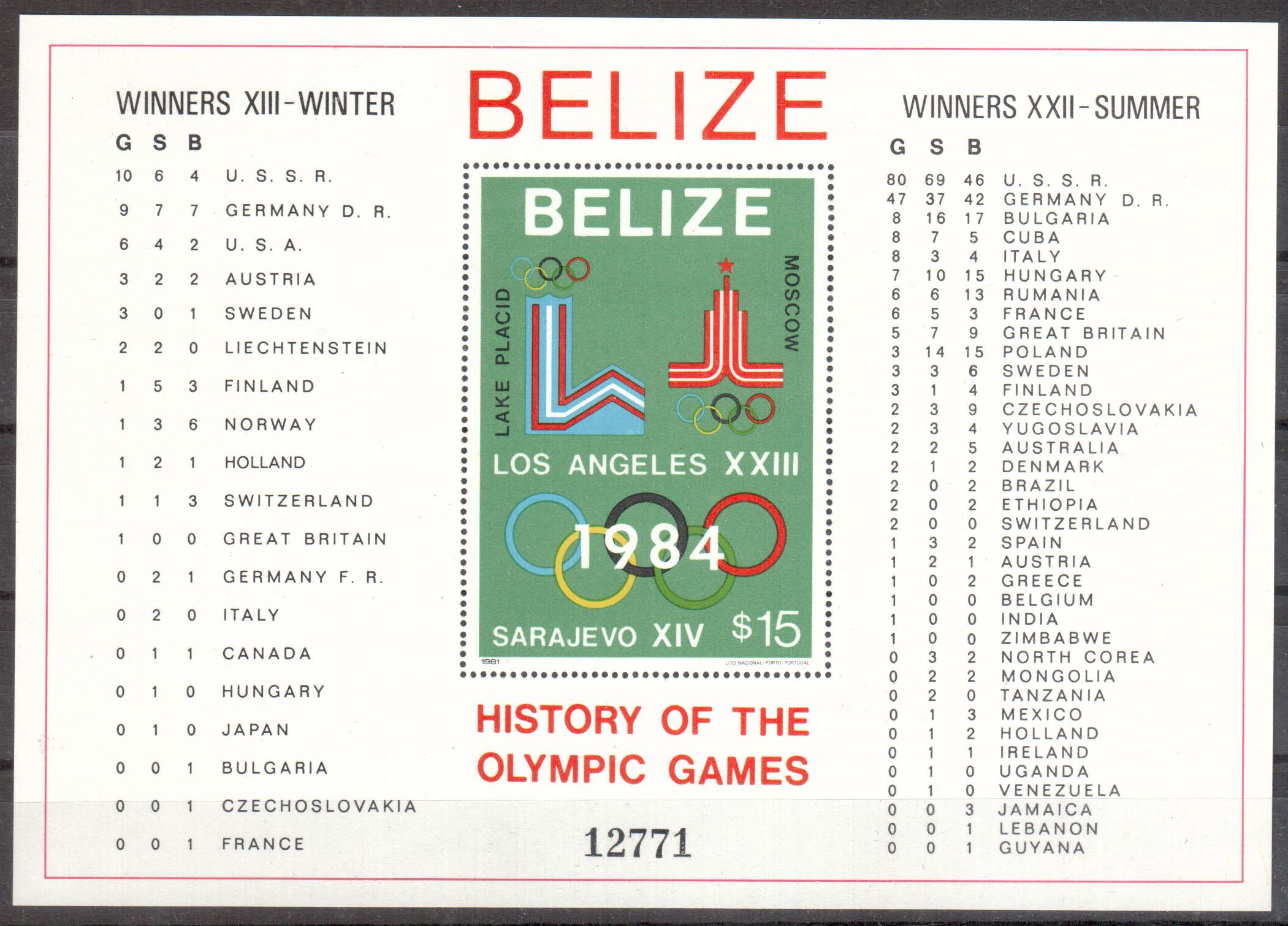 Art.Nr.: moskau015 Belize Michelnummer Block 37 A postfrisch
