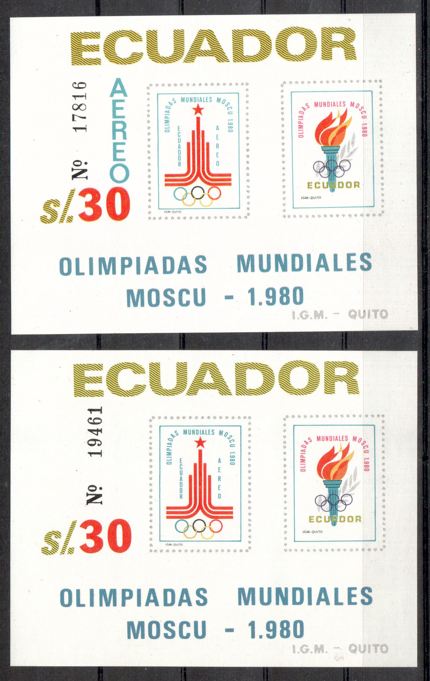 Art.Nr.: moskau049 Ecuador Michelnummer Block 95 - 96 postfrisch