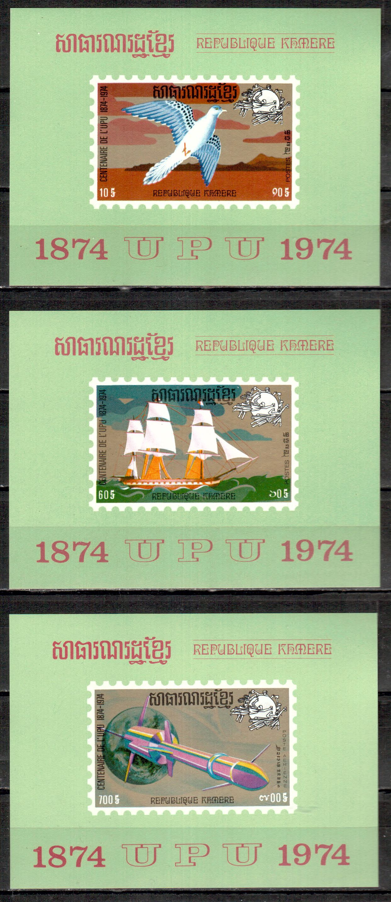 UPU192 Kambodscha Michelnummer 400 - 402 B 3 Einzelblocks postfrisch